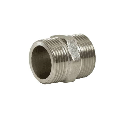 Латунный никелированный фитинг для соединения элементов трубопровода равного диаметра.