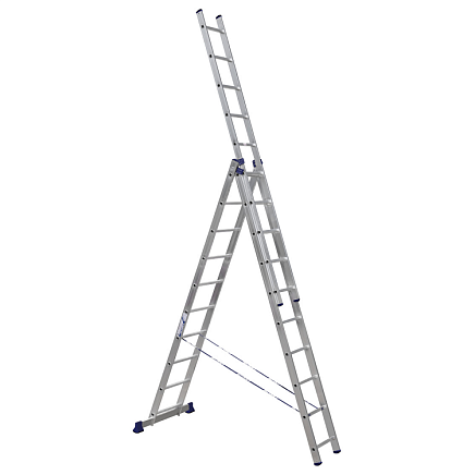 Трехсекционная универсальная алюминиевая лестница Алюмет Серия H3 5310 - это многофункциональное приспособление для разных работ. Может использоваться в приставном варианте, как двухсекционная лестница, а так же в качестве стремянки и в виде раздвижной, телескопической конструкции. Комплектуется страховочными ремешками, что повышает безопасность работ. Двухкомпонентные наконечники, которыми оснащены опоры, защищают лестницу от скольжения во время работы.