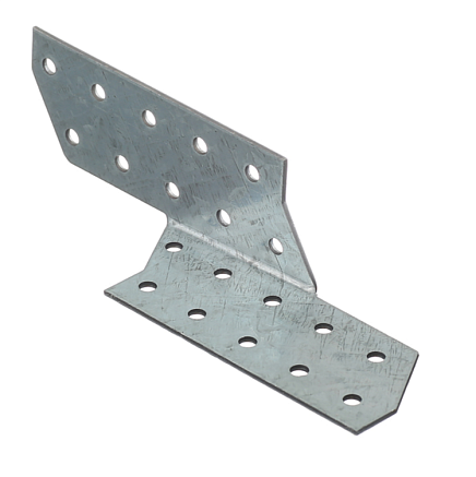 Держатель балки левый 40х170х40 оц. специальной формы для соединения элементов домов из дерева, включая несущие конструкции. На обеих сторонах держателя имеется по 10 отверстий под гвозди и шурупы.
