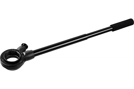 Трещотка с удлинителем для клуппов MIRAX 1/4" - 1 1/4", длина 620мм 28245 применяется для нарезания резьбы на металлических трубах. Используется совместно с клуппом. Оснащена двухкомпонентной рукояткой.